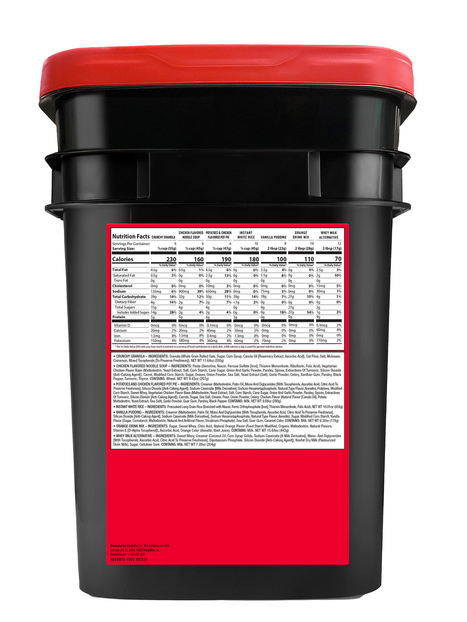 Introducing the 150 Servings Emergency Preparedness Food Bucket: This meticulously curated package goes beyond just food – it's about readiness in the face of uncertainty. With 80 servings of hearty entrees & sides, 30 servings for nourishing breakfasts, and an additional 40 drink servings, ReadyWise equips you for a range of situations.