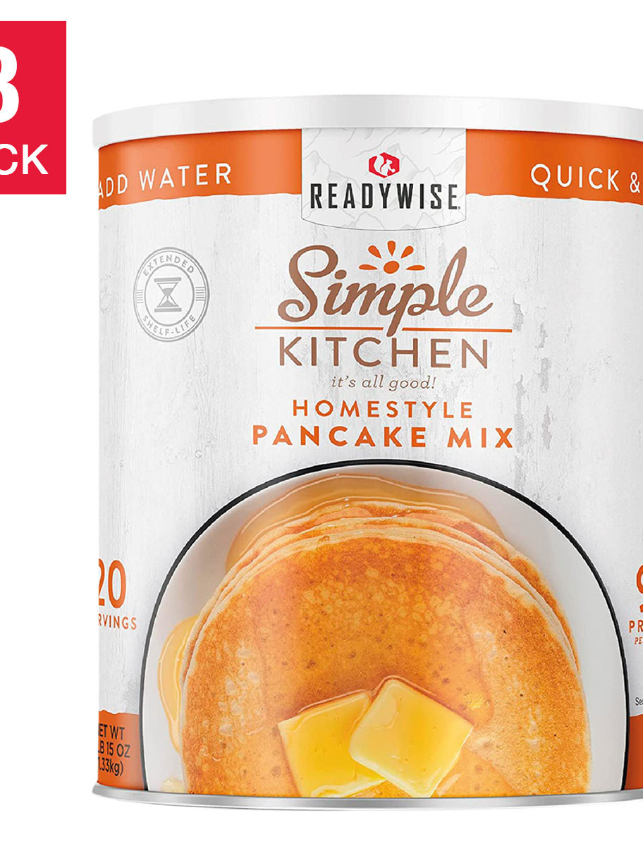 ReadyWise Simple Kitchen Pancake Mix, 3-pack #10 Cans (60 Total Servings)