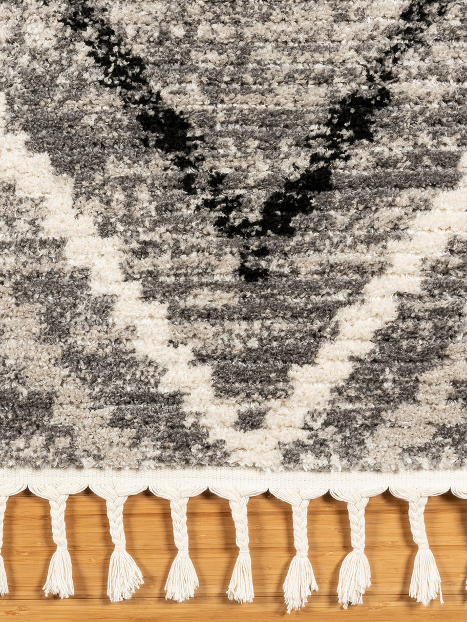 The Rowan Rug Collection features rugs with bold designs inspired by tribal and folk art. The designs are artfully heathered colors with ribbed texture throughout the rug. The room-sized rugs fit in living and dining rooms, bedrooms, offices, even dorm rooms. The braided fringes are an added touch. The rugs vacuum with little effort, and they resist shedding.