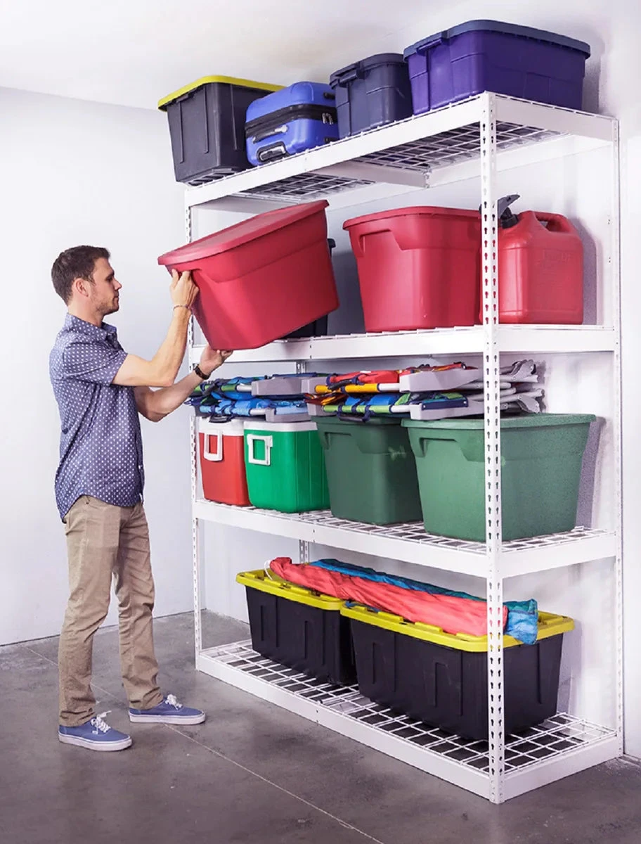 Maximize your garage storage space with our durable, heavy-duty shelving unit. our shelving unit provides ample storage for all your garage essentials. With customizable shelving heights, you can optimize your space and keep everything neatly in place, from tools and equipment to household items. Stay organized and clutter-free with our versatile garage shelving.