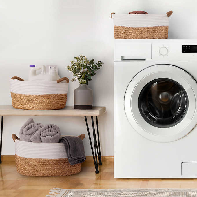 Seville Classics Hyacinth & Rope Baskets, 3-piece Set