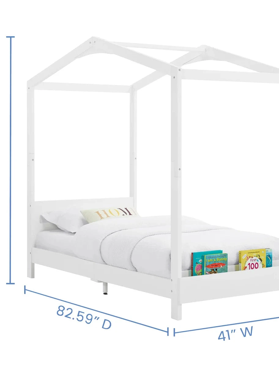 The Juniper Twin House Bed features a classic house shape that will inspire your child’s imagination! They will play house, build next level blanket forts, or pretend to camp out in their own bedroom, but most of all they will love heading to bed each night. Your child will adore this magical retreat for all its whimsical accents, and you will love it for its low height that’s easy for them to get in and out of. It even includes a built-in book storage at the footboard.