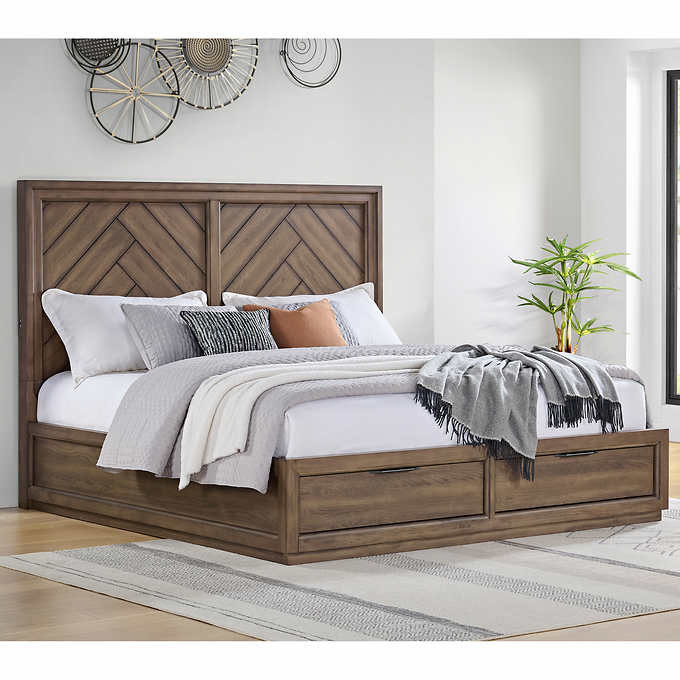 The Soho Storage Bed features a brown Oak finish that adds a natural and charming touch. The bed is a platform style bed that eliminates the need for a box spring. The two storage drawers feature English dovetail joinery and soft close undermount glides. The bedposts also feature 2 USB ports to help keep you powered through the night.