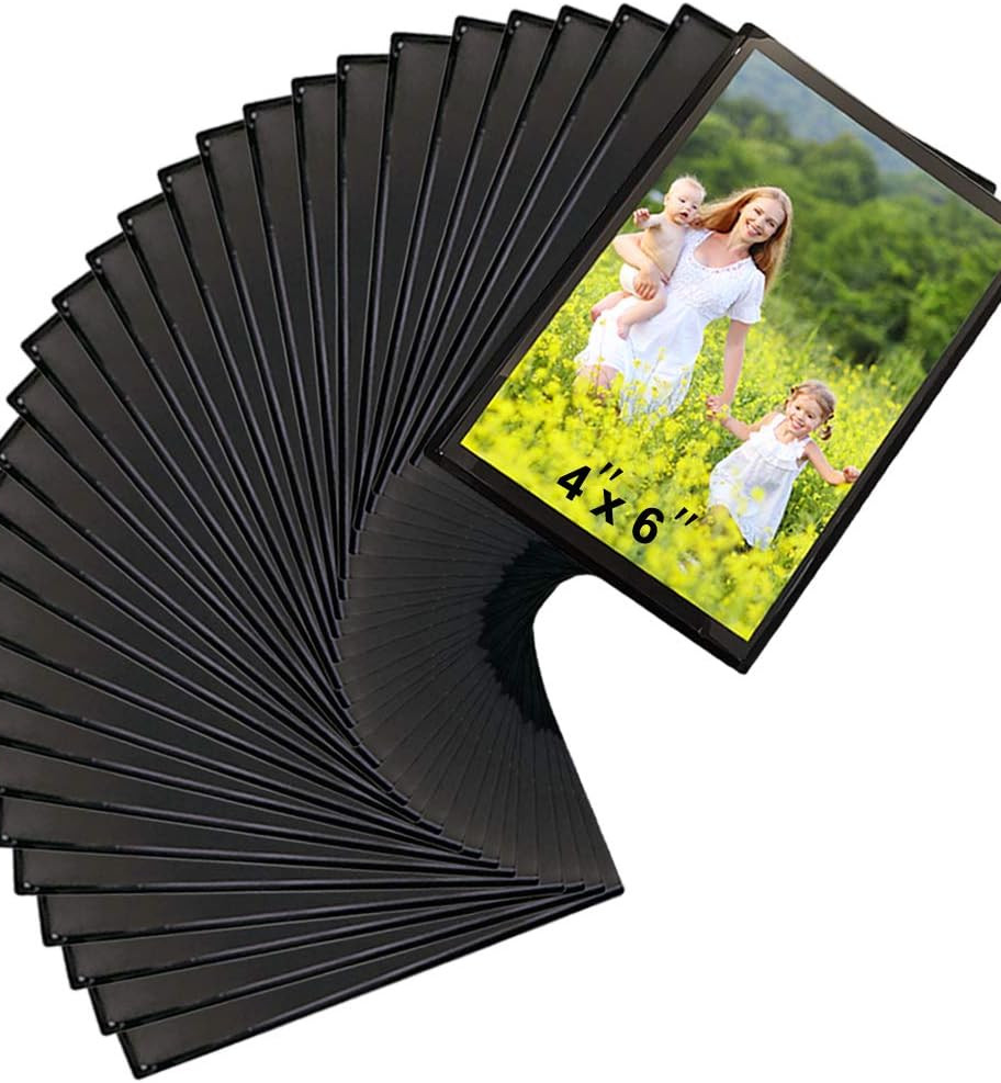 - Magnetic photo sleeve frame,Includes 30 pcs 4" x 6". With a black backing, it is perfect for exhibiting photos, pictures or prints.Widely use on a refrigerator, filing cabinet, steel door, magnetic whiteboard or other metal surface!