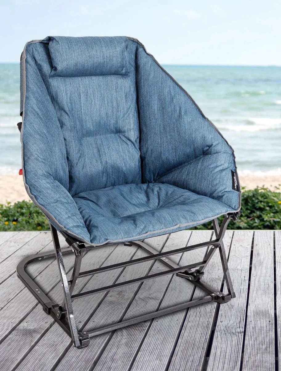 The Sports Diamond Rocker features heavy-duty polyester fabric on a strong powder-coated steel frame and a well-padded seat and back for greater comfort. The Patented springs-less technology provides a smooth and effortless rocking motion. It is perfect for any outdoor use where additional seating is required. It opens and folds in a snap. No assembly required.