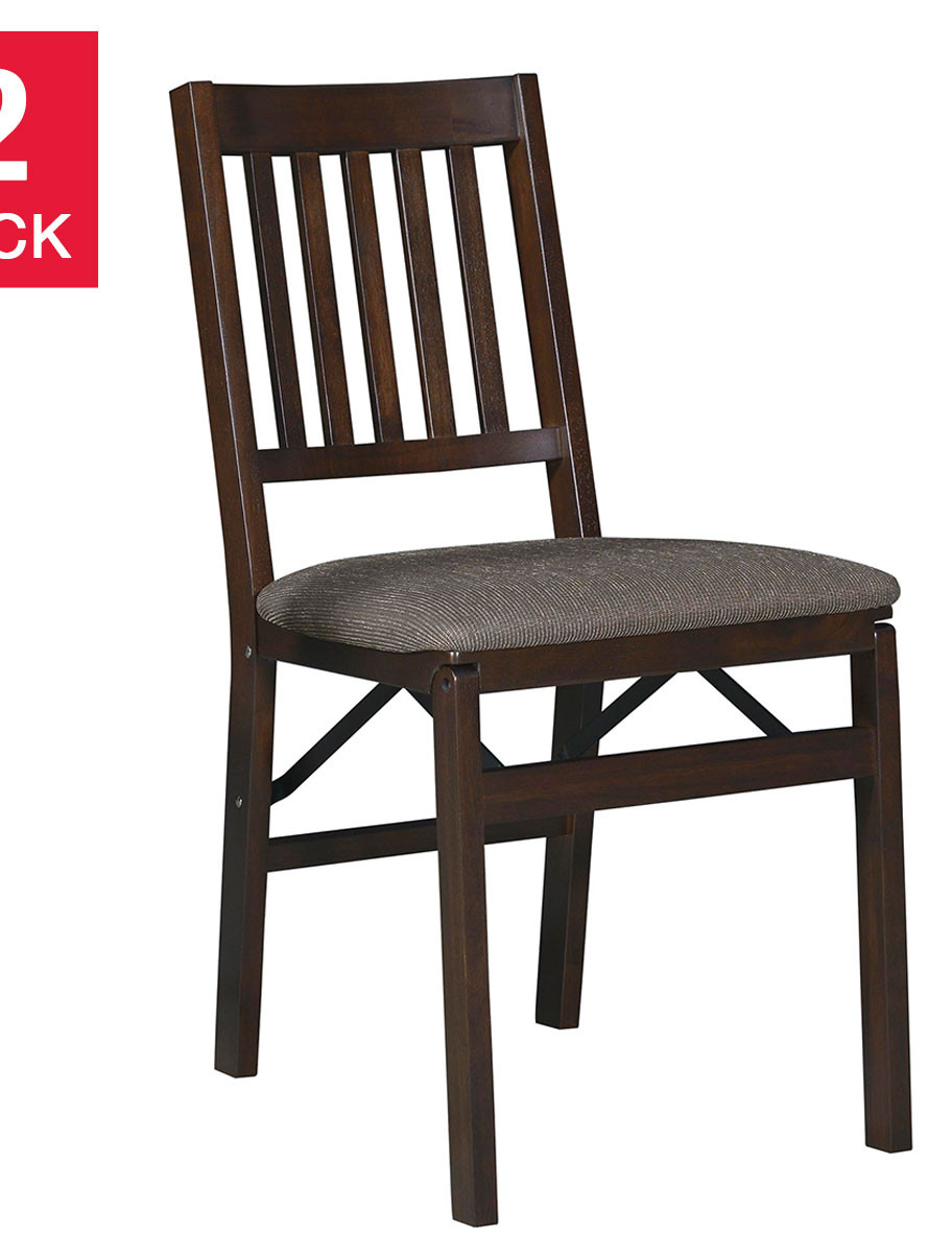 Stakmore Wood Folding Chair with Upholstered Seat, Espresso, 2-pack