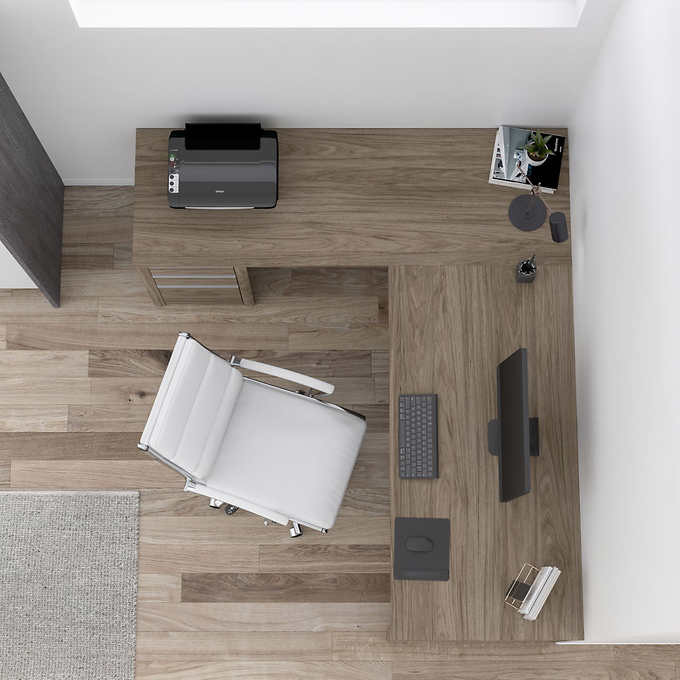 - L-Shaped Desk with Pedestal: