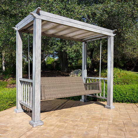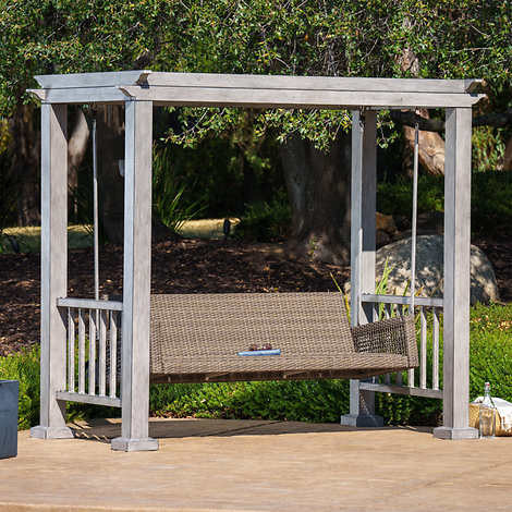 - 1 Woven Pergola Swing and 2 Decorative Sunbrella Fabric Pillows