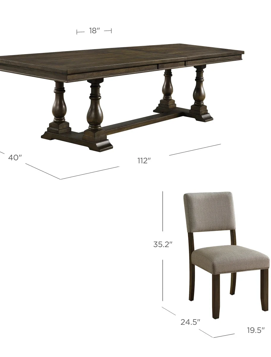 Call a meeting or call them for dinner. The Thomasville Callan 9-Piece Dining Set has an antique yet stately personality that boldly attracts attention and serves eight exceptionally well. Constructed with rubberwood solids, the set is designed with a removable leaf and trumpet legs -- as well as eight fabric upholstered chairs, complete with webbed seat suspension, foam seat cushion and protective floor glides.