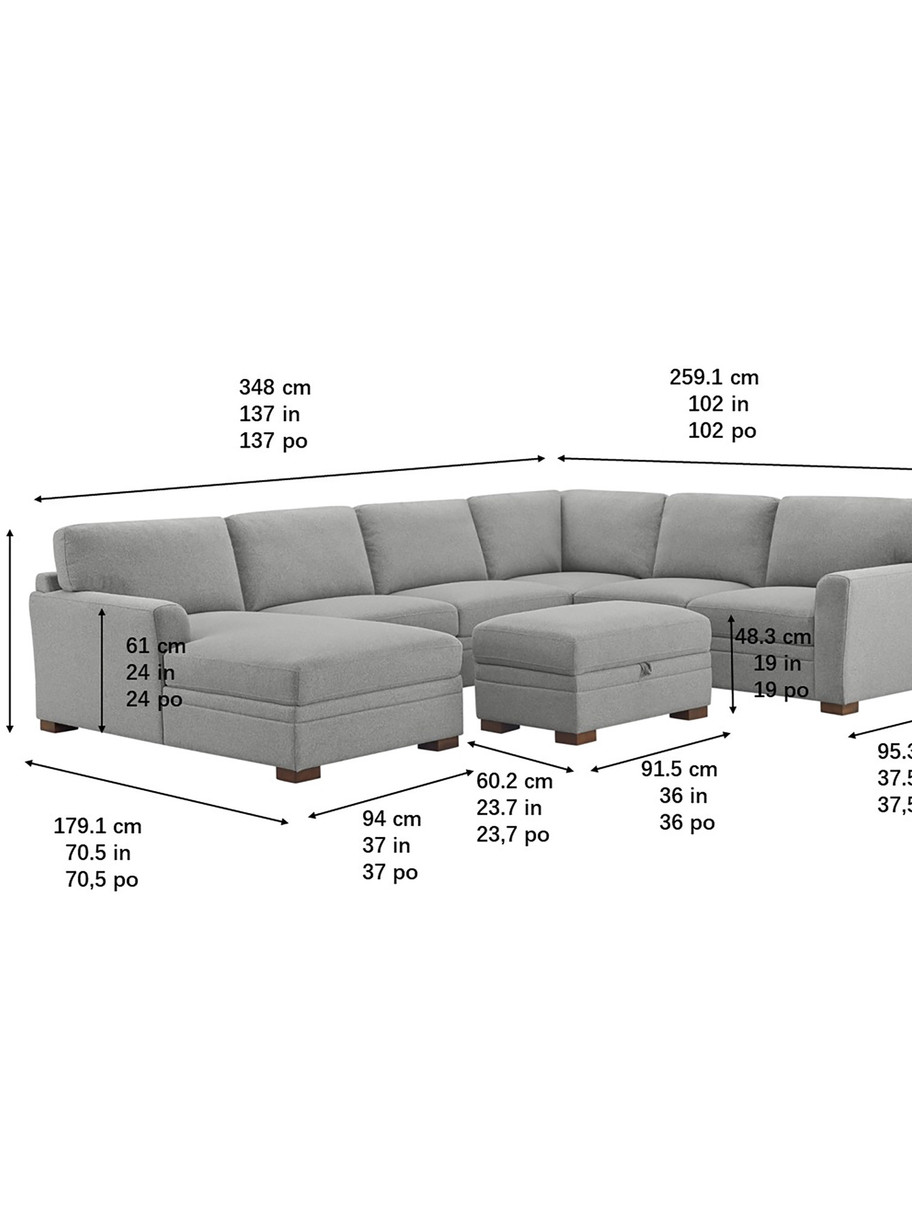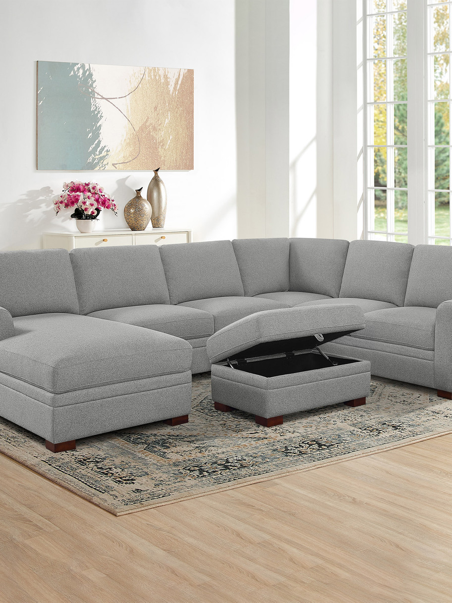 Thomasville Langdon Fabric Sectional with Chaise and Storage Ottoman