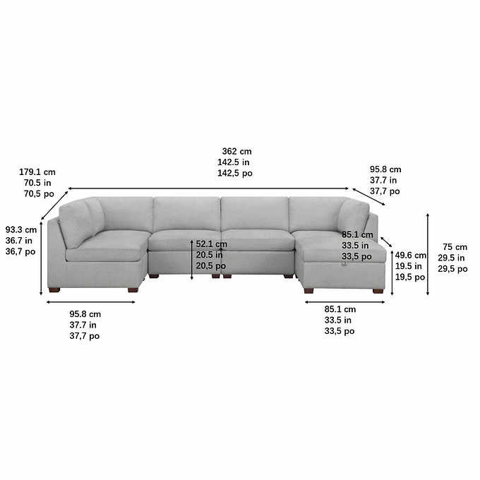 Overall Sectional Dimensions: W x L x H - 70.5 in. x 142.5 in. x 36.7 in.