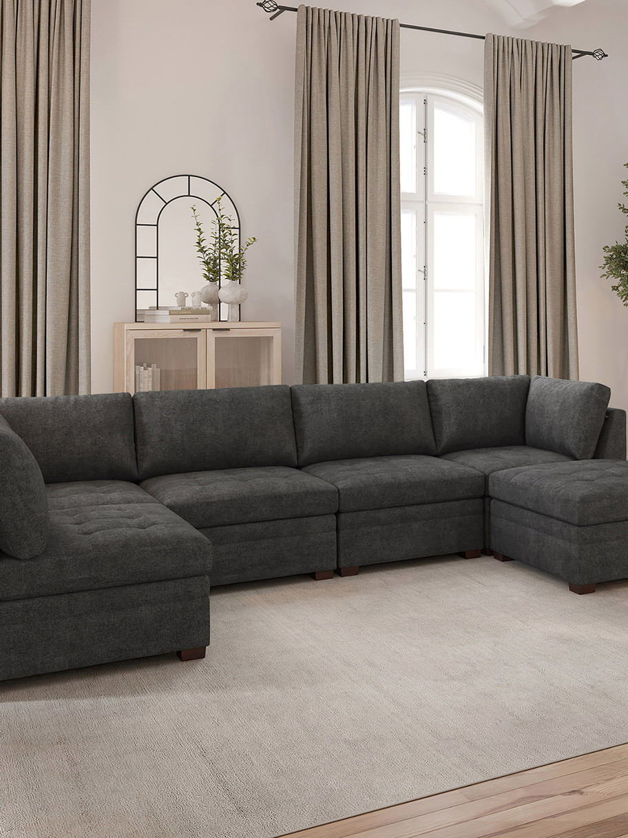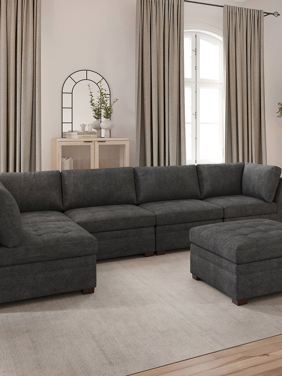 Thomasville Tisdale Modular Sectional 6-piece Dark Gray with Storage Ottoman