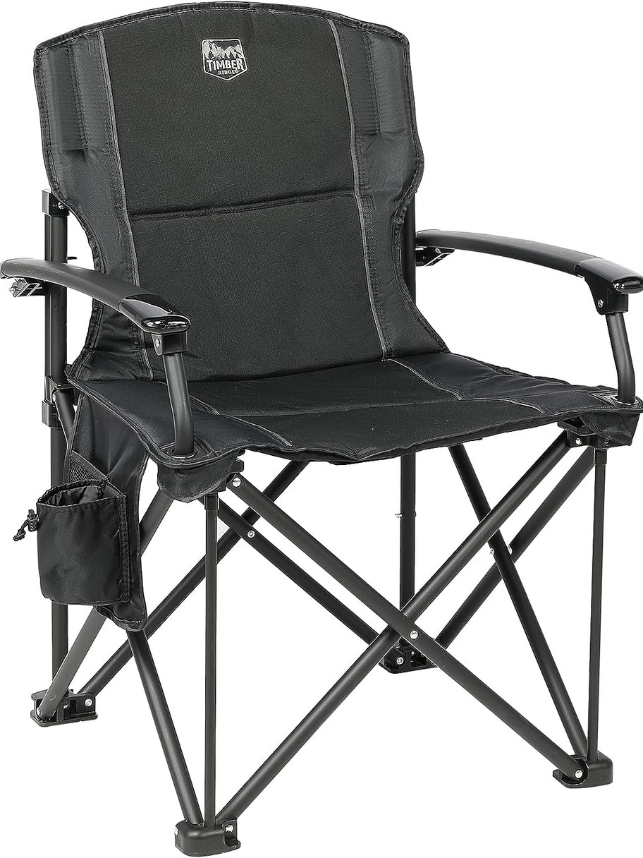 TIMBER RIDGE Folding Camping Chair with Padded Hard Armrest and Cup Holder-for O