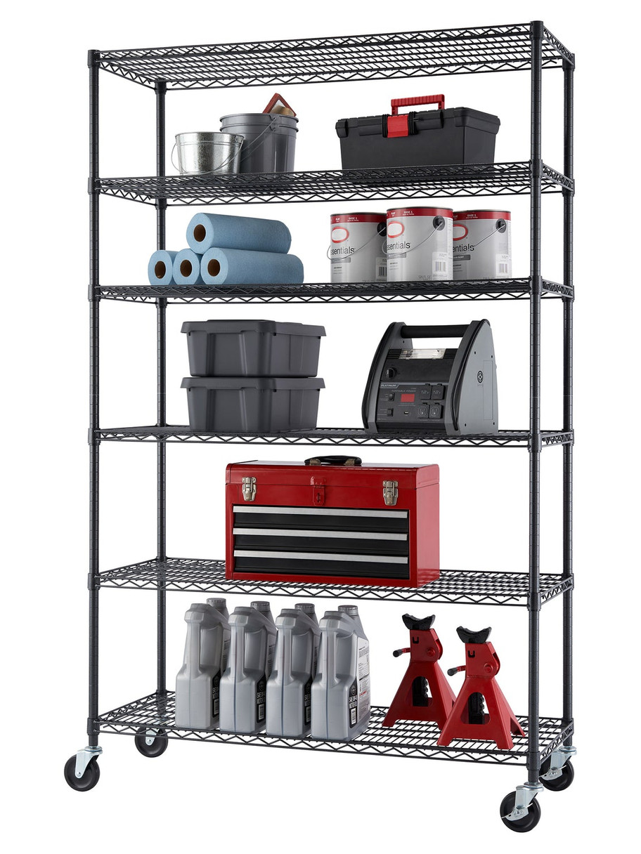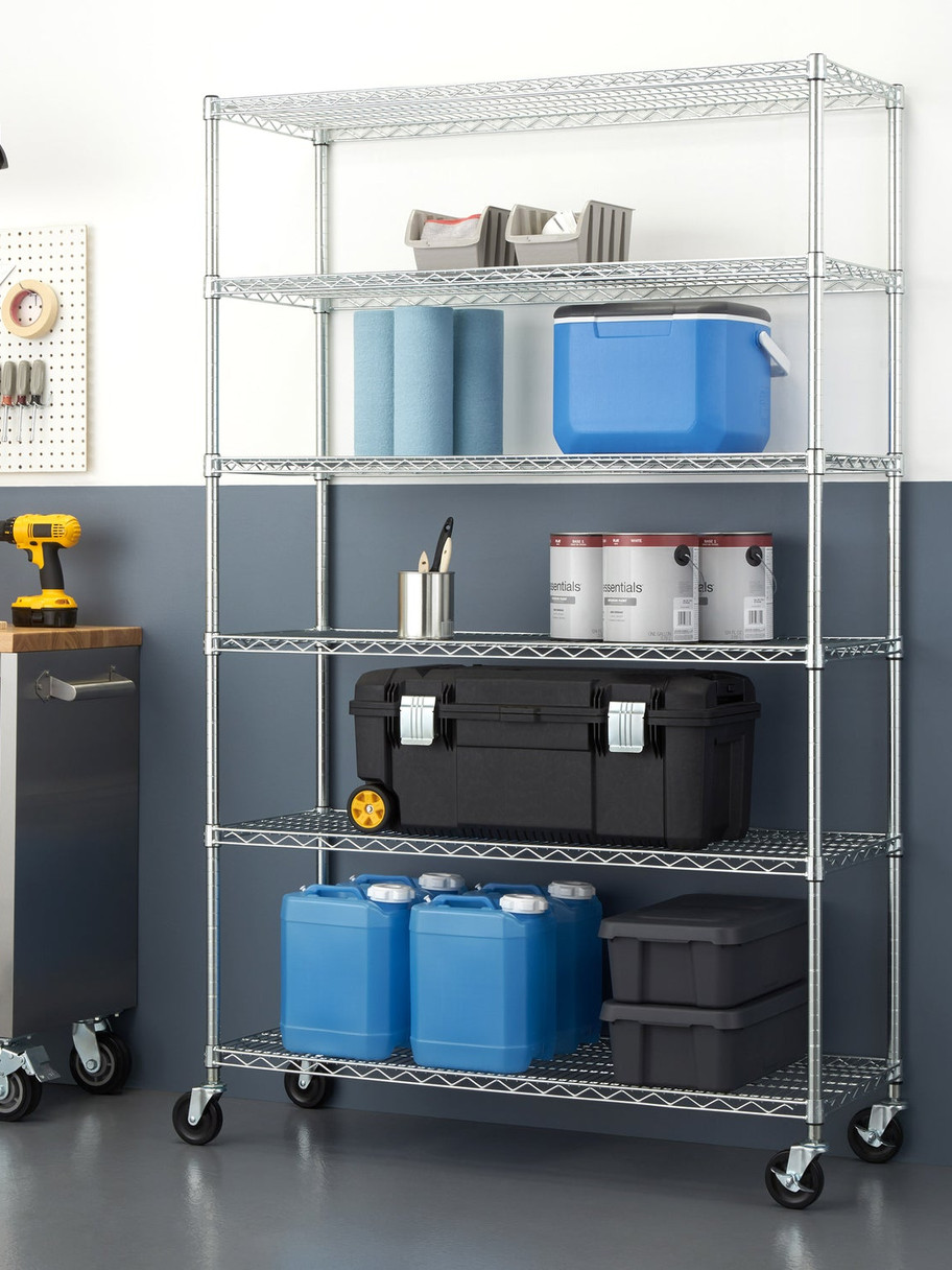 TRINITY 6-Tier Wire Shelving Rack, 48" X 18" X 72" NSF, Includes Wheels