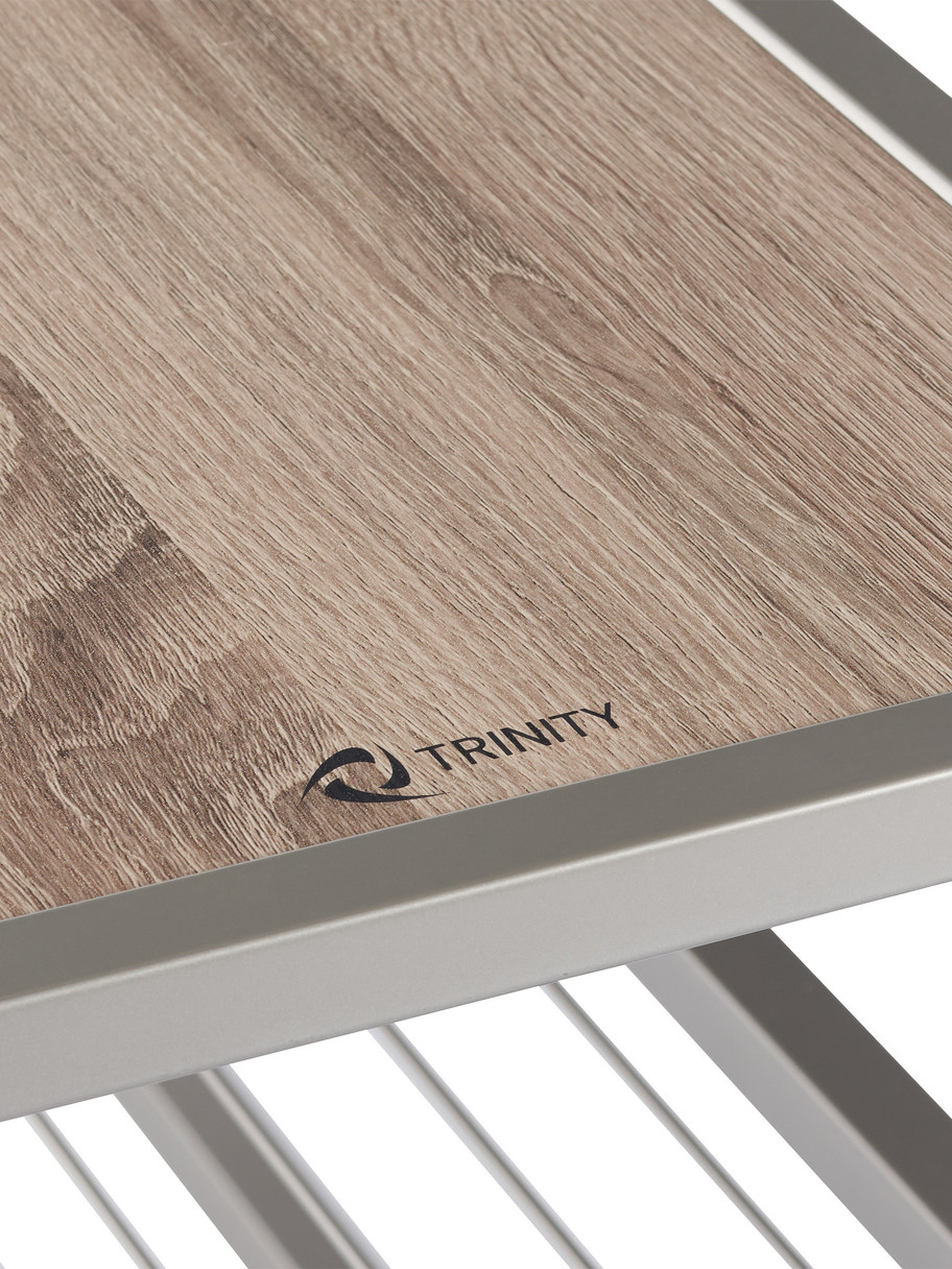 The MDF classic gray color wood top and powder-coated steel frame ensure durability and easy maintenance.