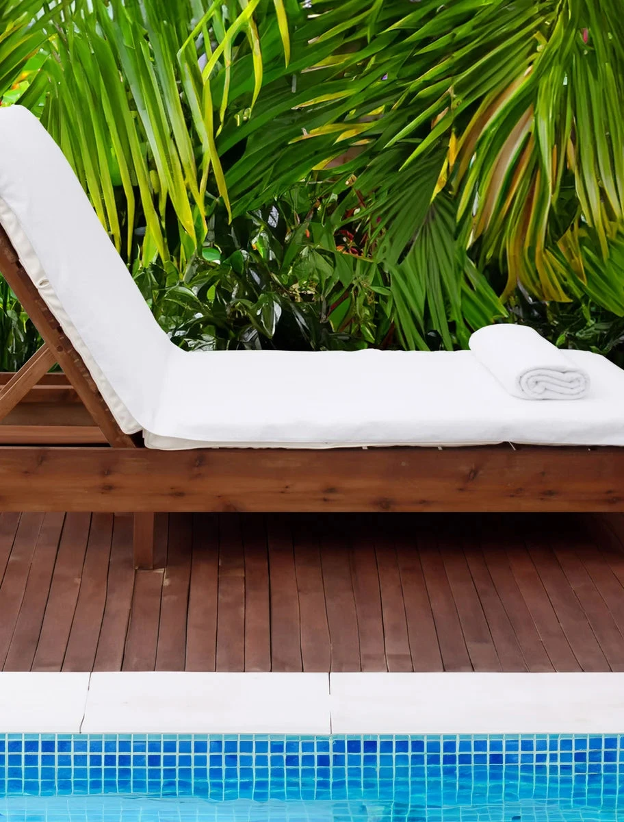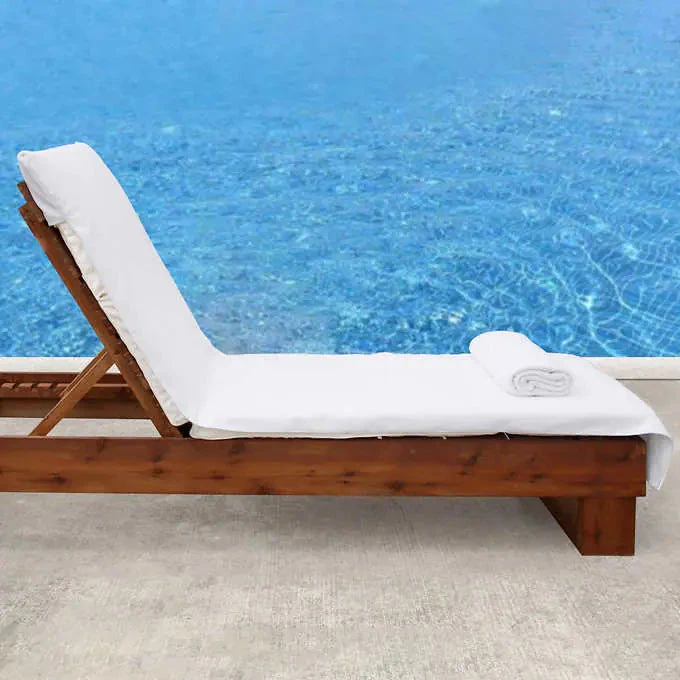Add comfort and elegance to your backyard retreat with this beautifully designed chaise lounge cover. The chaise lounge cover is made of soft and absorbent premium Turkish cotton. The 8” sleeve fits over the top of your chaise lounge to stay in place. Made with an exclusive diagonal weaving technique that is very durable and designed to last.