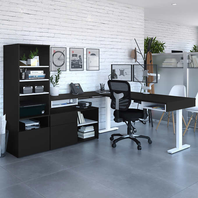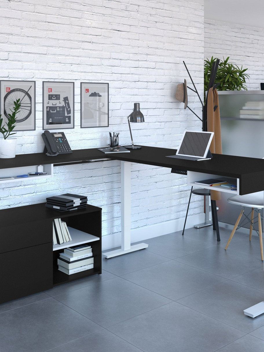 Viva L-Shape Height Sit and Stand Adjustable Workstation with an Adjustable Dual