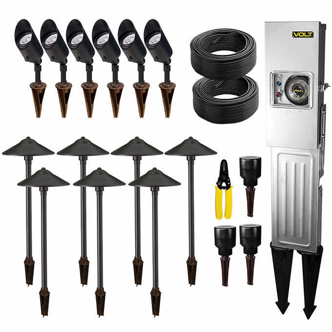 VOLT Landscape Lighting 13 Piece Path & Area Light Brass LED Starter Kit