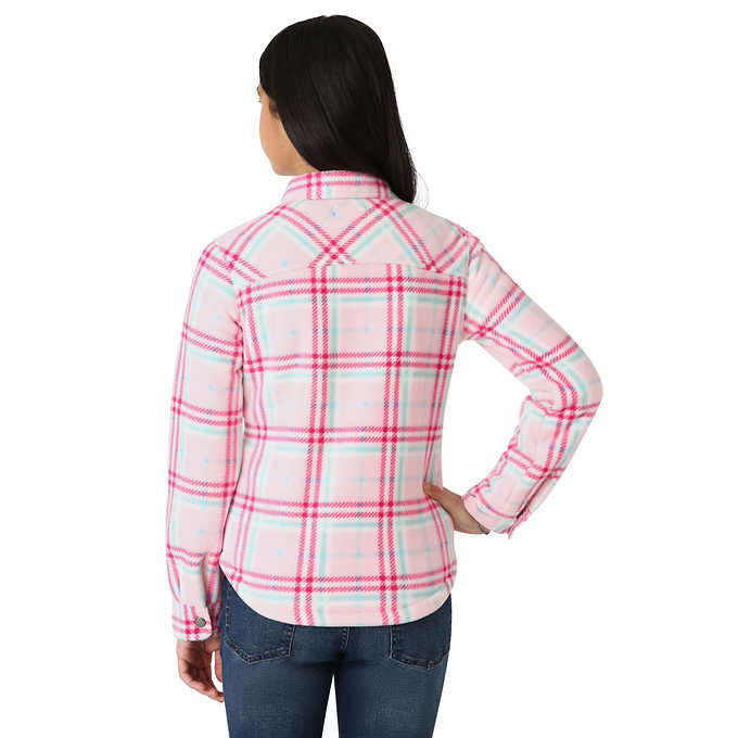 - Fleece shirt jacket includes two front chest patch pockets