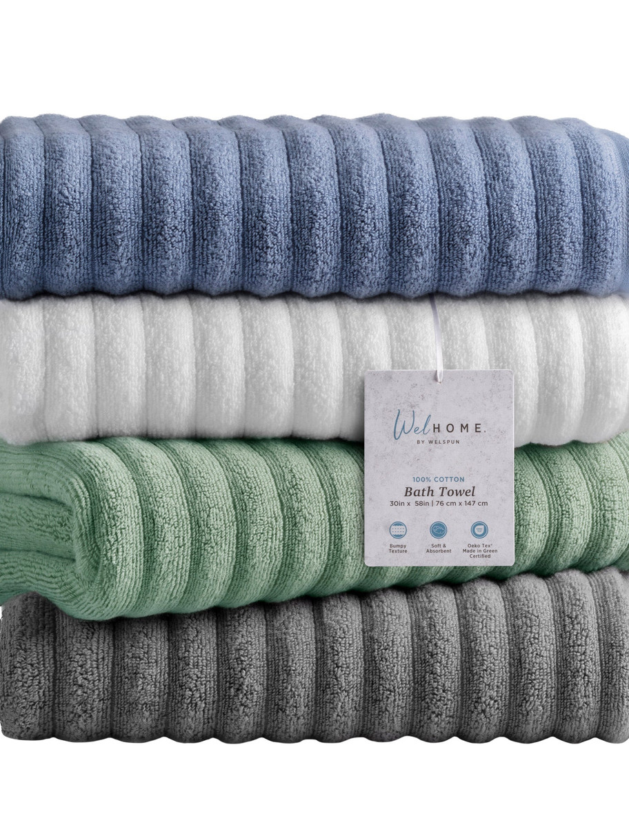 Welhome 100% Cotton Bumpy Textured Bath Towel 2-Piece Set