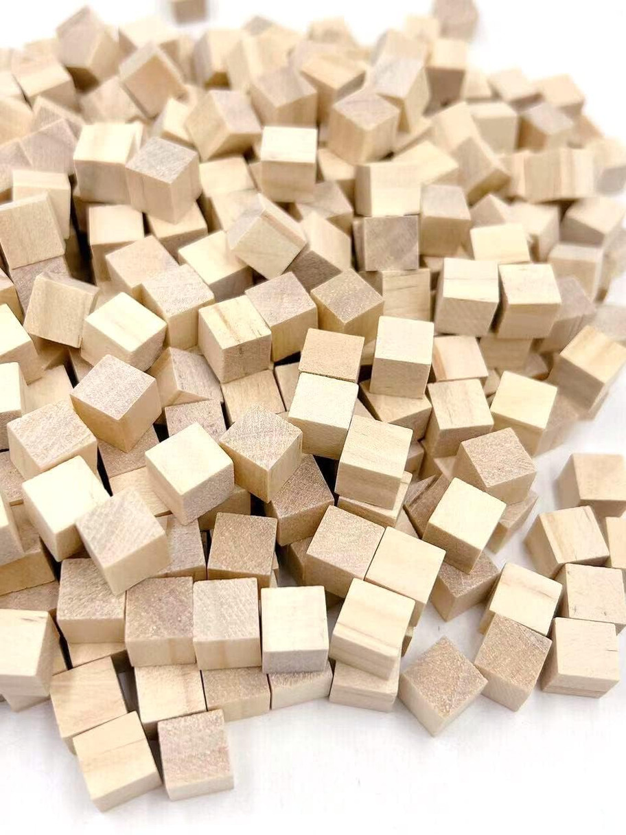 Wood Blocks for Crafts, Unfinished Wood Cubes, 1cm Natural Wooden Blocks, Pack