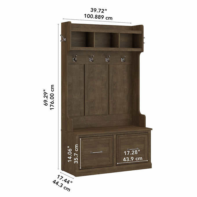 - Shoe Storage Bench with Doors and Hall Tree with Coat Hooks