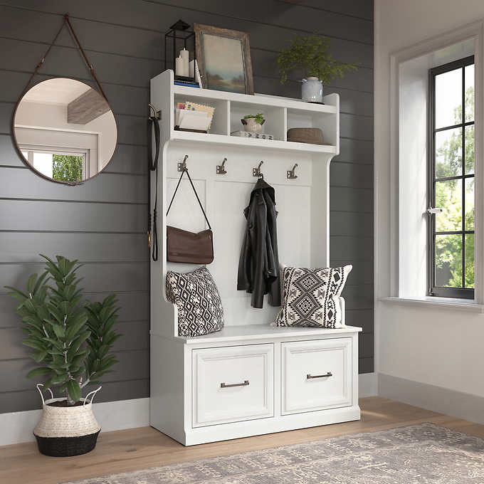 - Shoe Storage Bench with Doors and Hall Tree with Coat Hooks