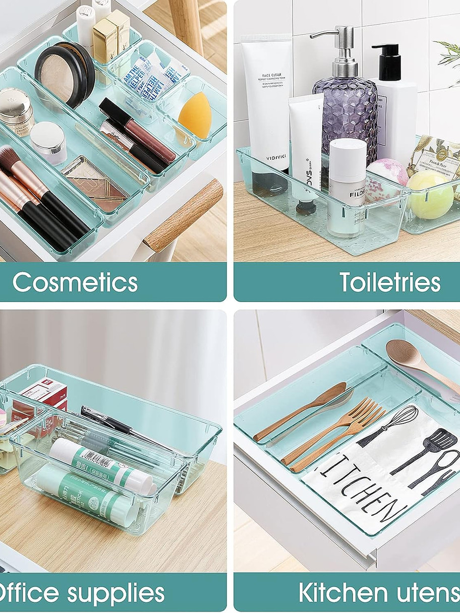 - Premium Material:The drawer organizer is made of non-toxic plastic which may be safely used. The transparent design makes it easy to find what you need quickly.