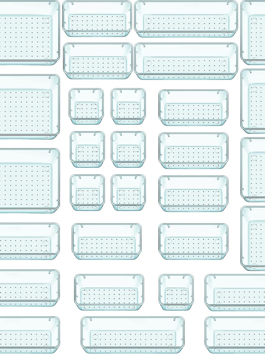 WOWBOX 25 PCS Plastic Drawer Organizer Set, 4 Sizes Desk Drawer Divider Organize