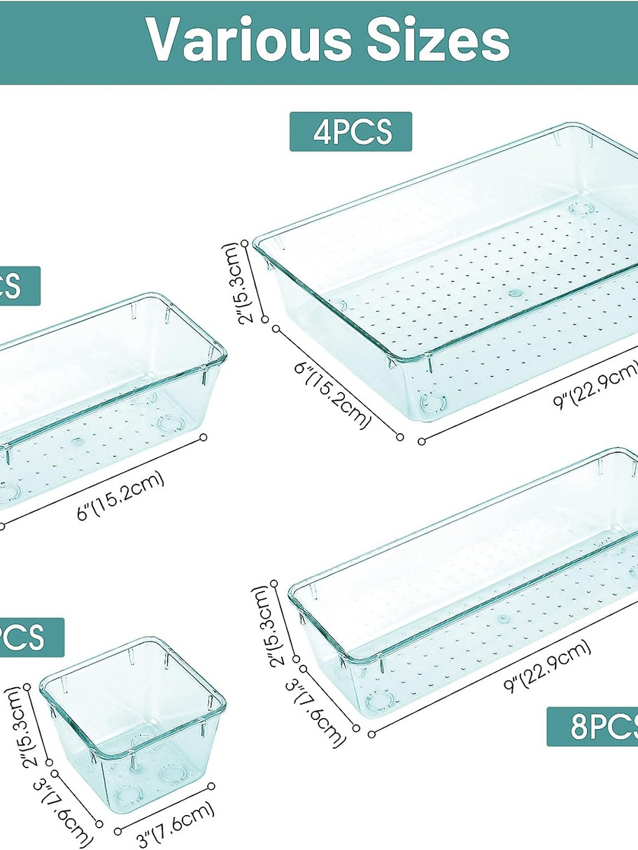 - Variety Storage Ways: These versatile Drawer Divider trays fit any part of your home. Suitable for all kinds of drawers, such as dresser / bathroom / kitchen / office. Ideal choice for organizing cosmetics, pins, hair accessories, jewelry, office supplies, craft supplies, utensils, etc.