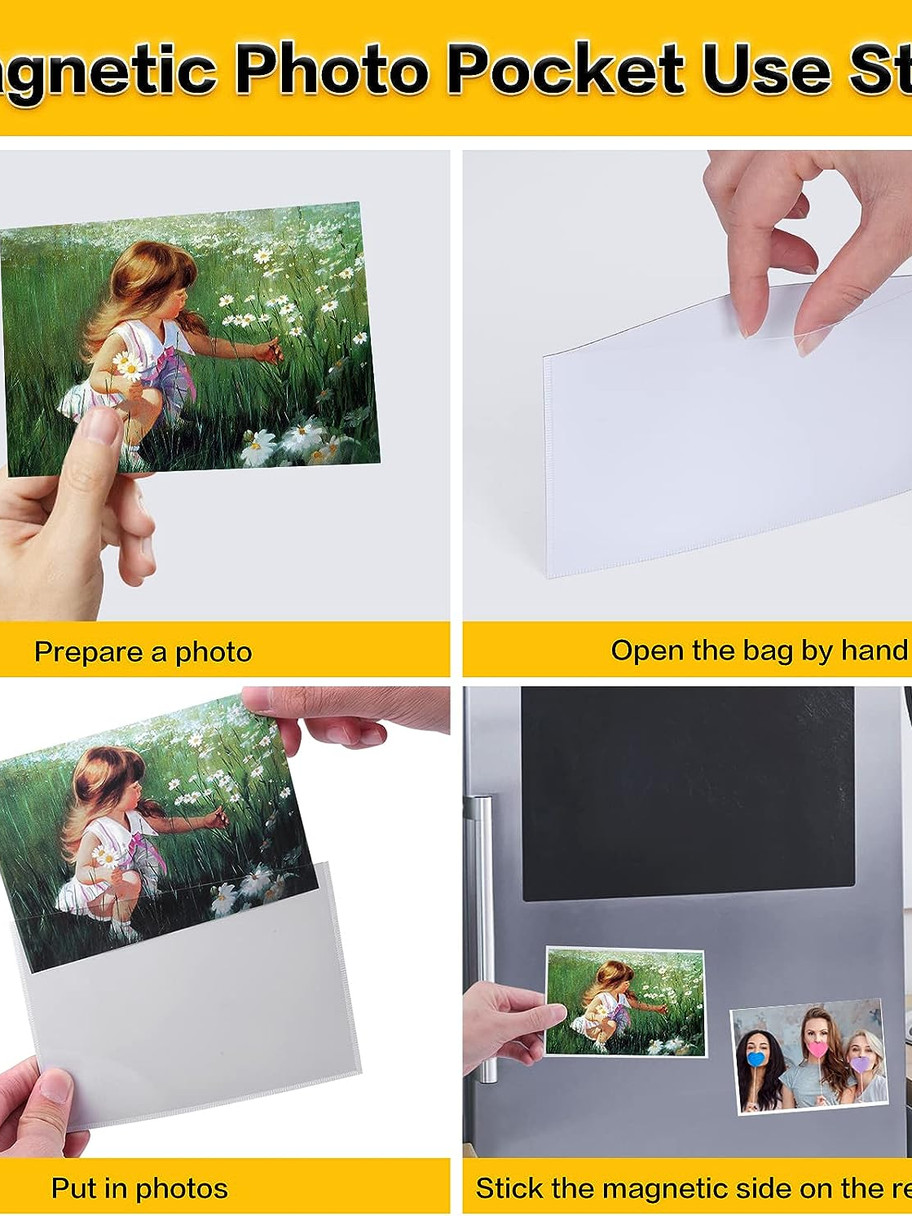 - [TRANSPARENT LAYER PROTECTION]: These magnetic photo frames feature clear pockets for easy storage of photos and also protect photos from yellowing over time. Scratch-proof. magnetic photo frame Easy to clean, you can easily wipe with a slightly damp cloth to keep your photos clean.