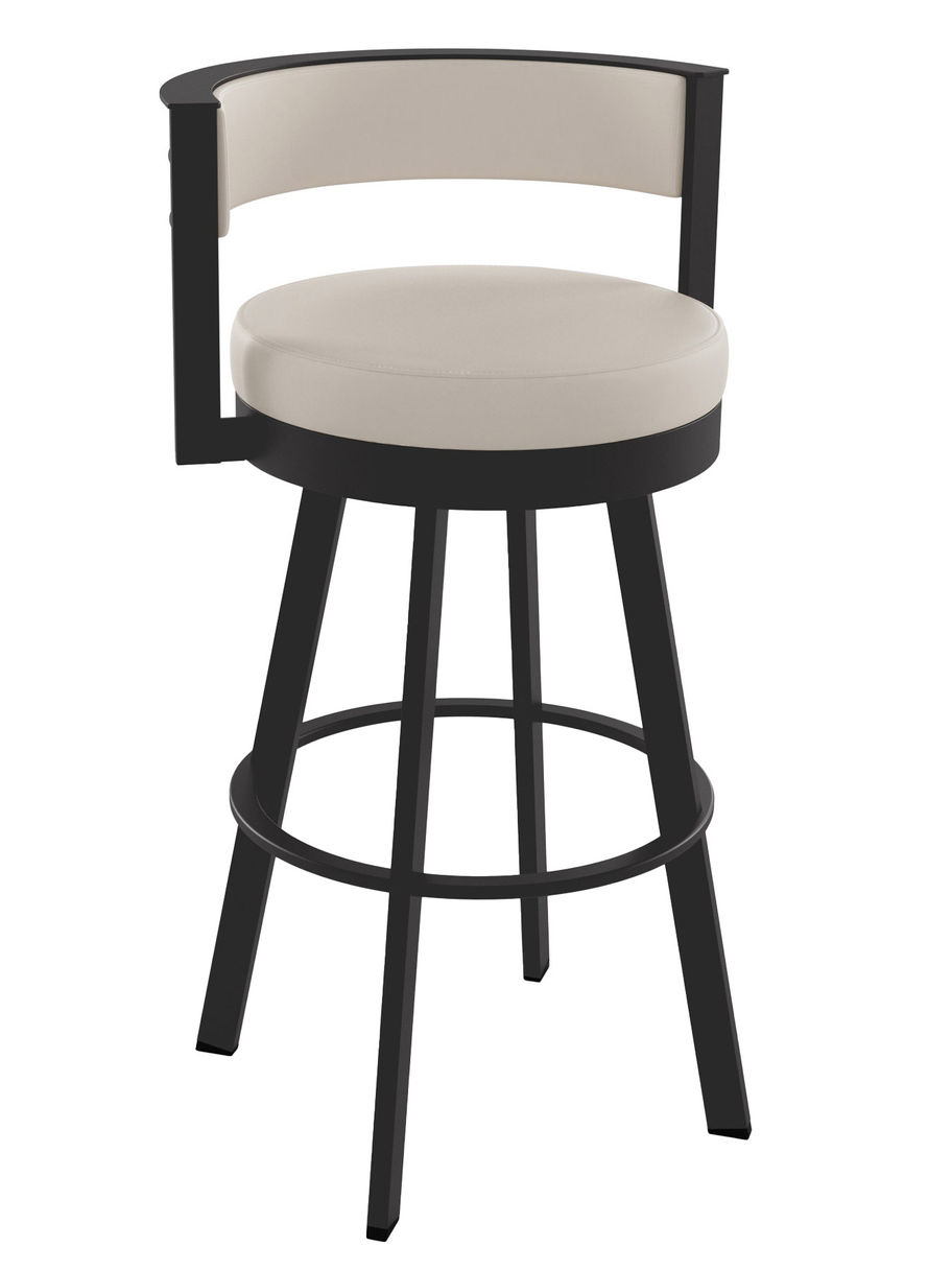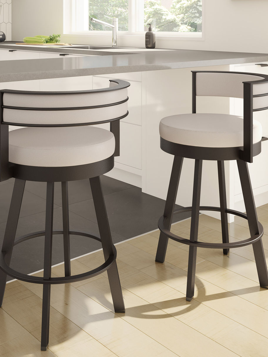 Bold but stylish curved back design best describes the Browser swivel stool. Attractive yet durable steel construction with sturdy pyramid style legs will insure a lifetime of beauty to any home setting. Contrasting colour cushions and subtle accents add dramatic style to any environment.