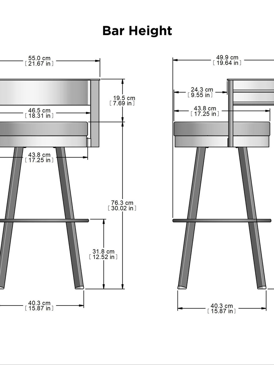 Barstool Dimensions: W x L x H - 55.4 cm x 49 cm x 96 cm (21.8 in. x 19.3 in. x 37.8 in.)