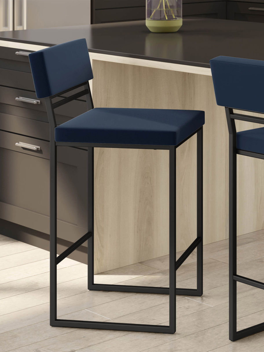 Amisco Everly Modern Counter Stool, Blue Seat and Black Base