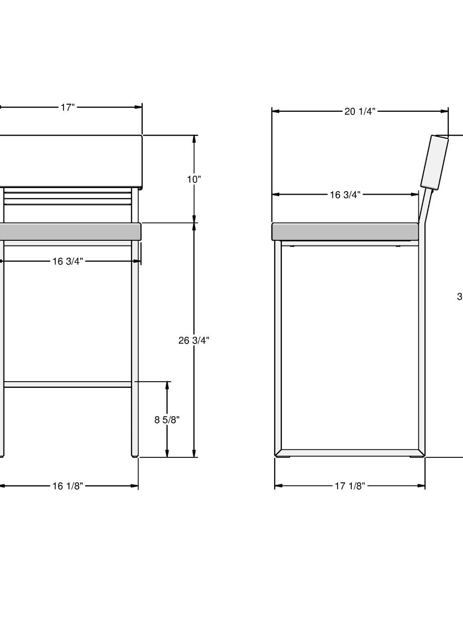 - Counter stool: 43.2 cm × 52.1 cm × 93.3 cm (17 in. × 20.5 in. × 36.8 in.)