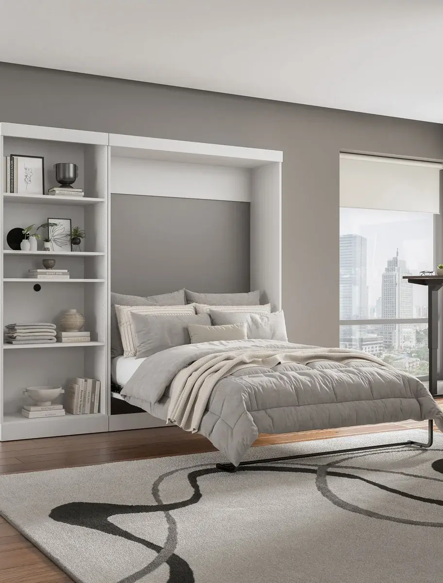 Bestar Boutique Double Wall Bed 2-piece Set with Shelving Unit