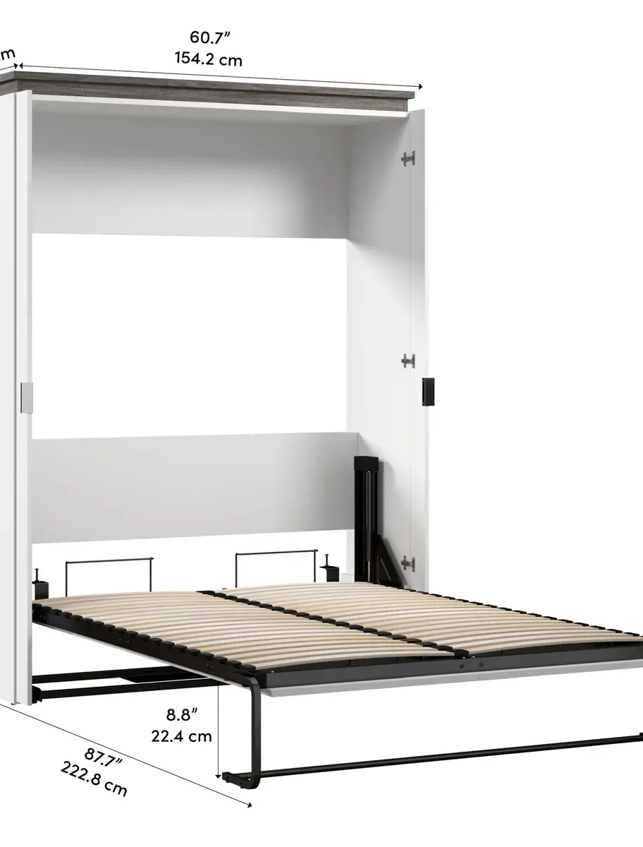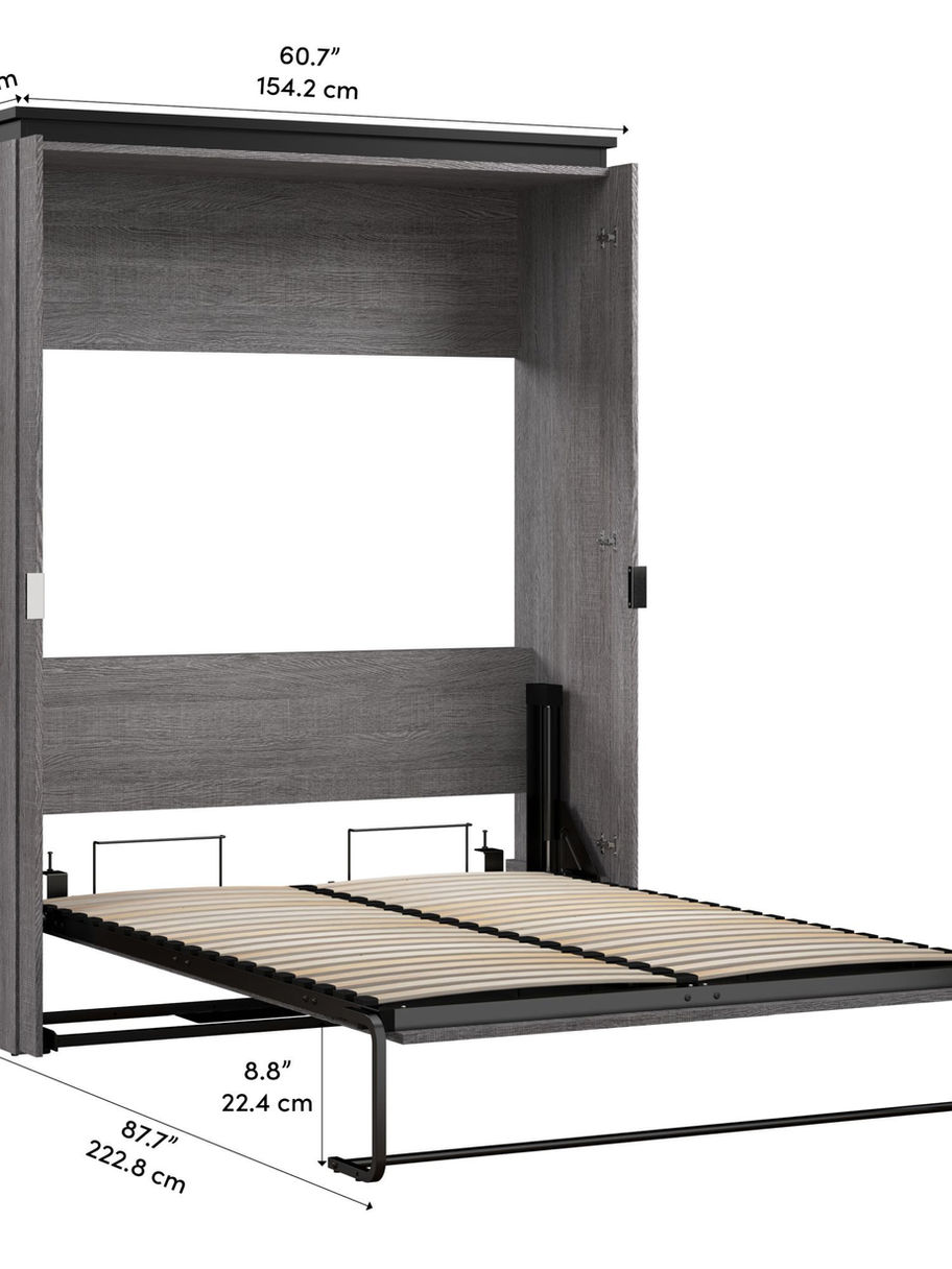 - Murphy bed accommodates most standard Full mattresses (Double Wall Bed only*): 20.3 cm to 25.4 cm thick (8 to 10 in.), 27.2 kg to 40.8 kg (60 to 90 lb.), 137.2 cm × 190.5 cm (54 × 75 in.)