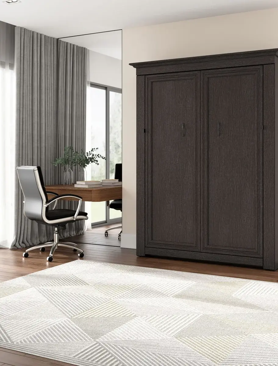 - Dual-mount wall bed mechanism attaches to floor and wall for ease of assembly