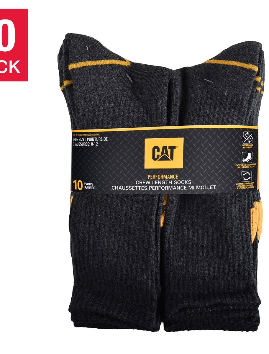 Caterpillar Men's Performance Crew Length Sock, 10-pack