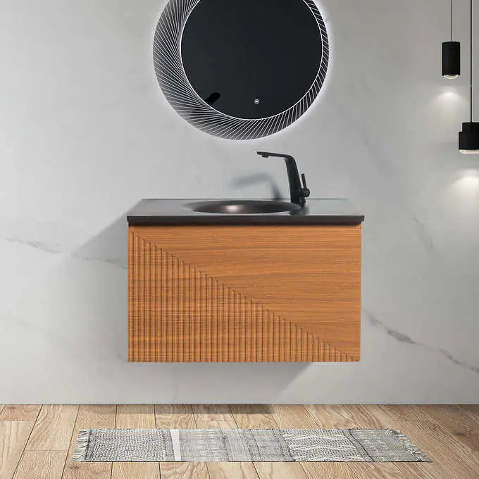 - Textured finish on Melamine construction adds a modern flair to your bathroom space.