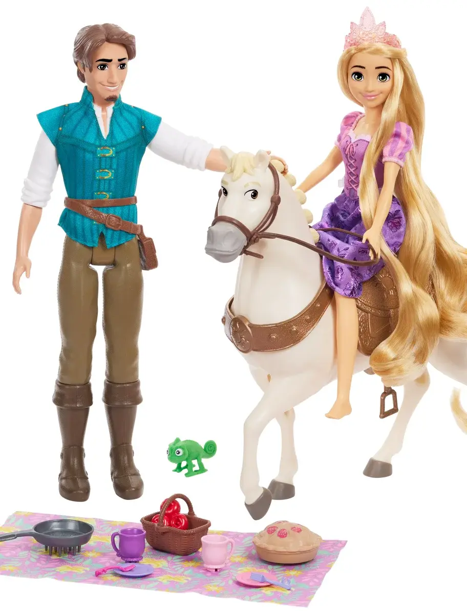 - Set includes Rapunzel and Flynn Rider dolls, Maximus the horse and Pascal!