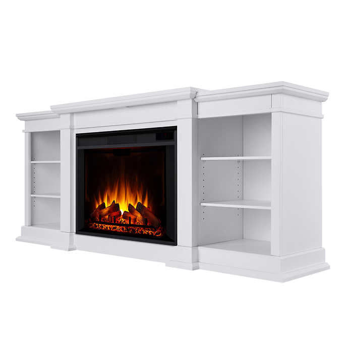 Make a statement with the bold profile of the Eliot Grand. This impressive entertainment center offers ample storage with adjustable shelving on either side. The VividFlame electric firebox plugs into any standard outlet for convenient set up. Features of the Vivid Flame Grand Series electric firebox include 1500 watt infrared heating, remote control, programmable thermostat, timer function, brightness settings, and ultra-bright LED technology.