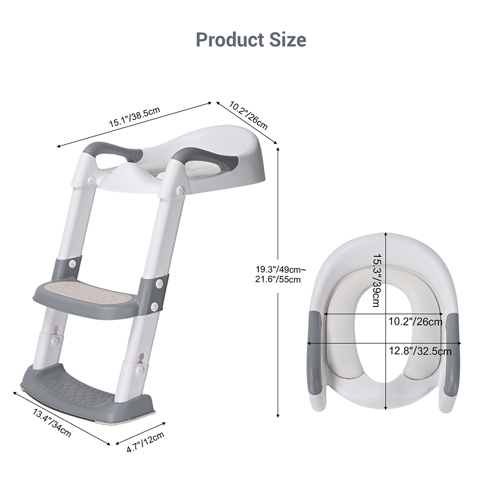 The built-in step stool provides 5-level adjustable height options, accommodating children of various sizes and stages of development. This feature ensures comfort and safety during toilet training.