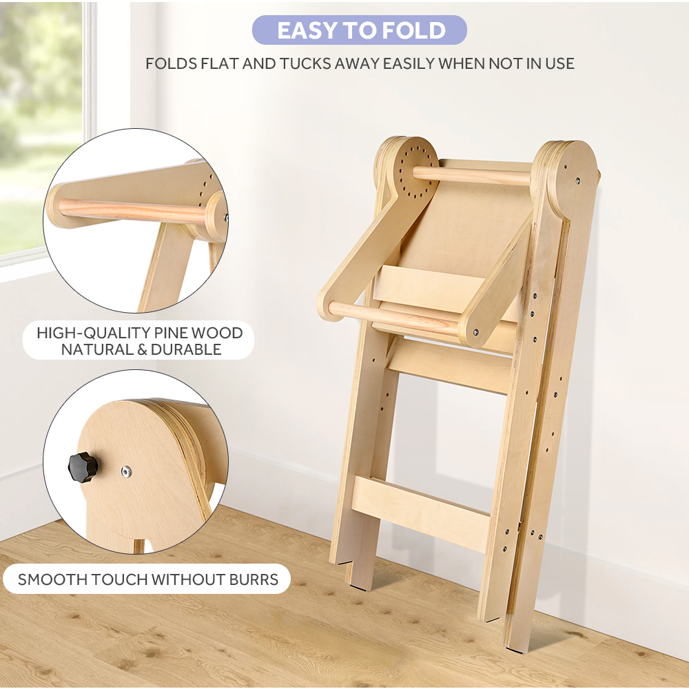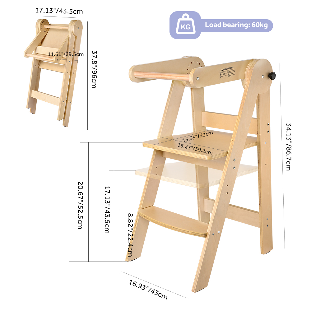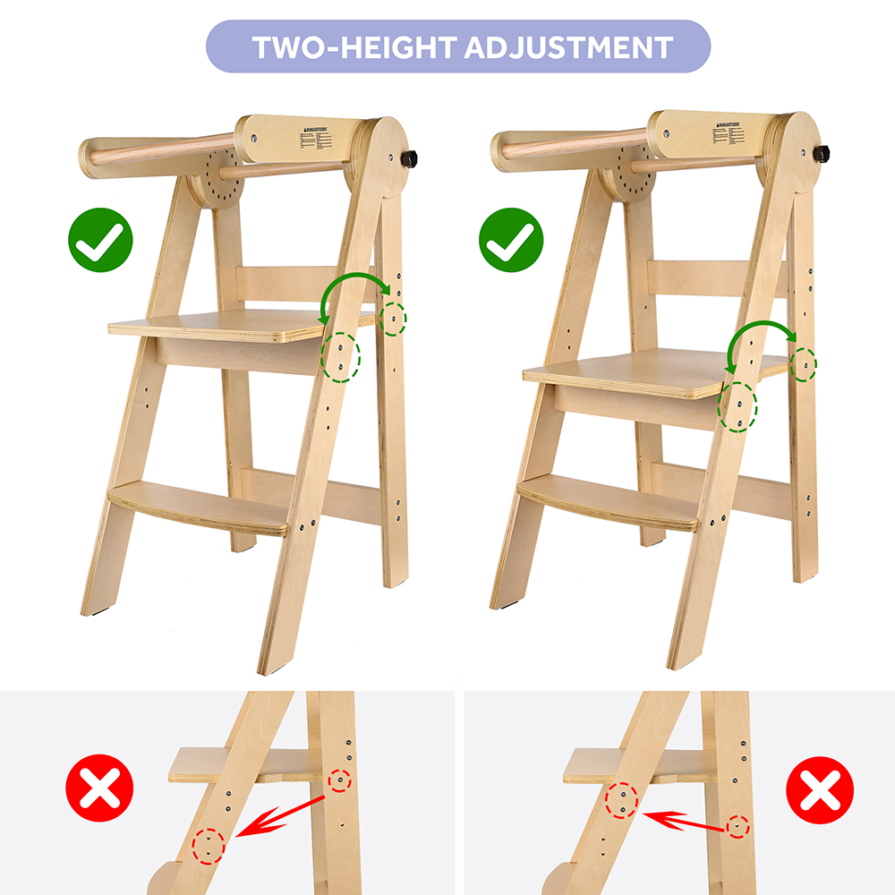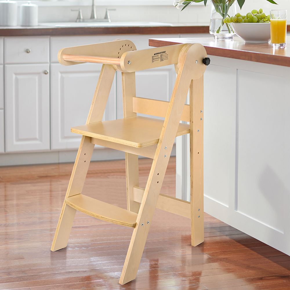 The toddler tower elevates the baby to a counter height, so that they can get involved in your activities, and you can keep your eyes on them to make sure they are safe. The foldable feature makes it easy to carry and space-saving.