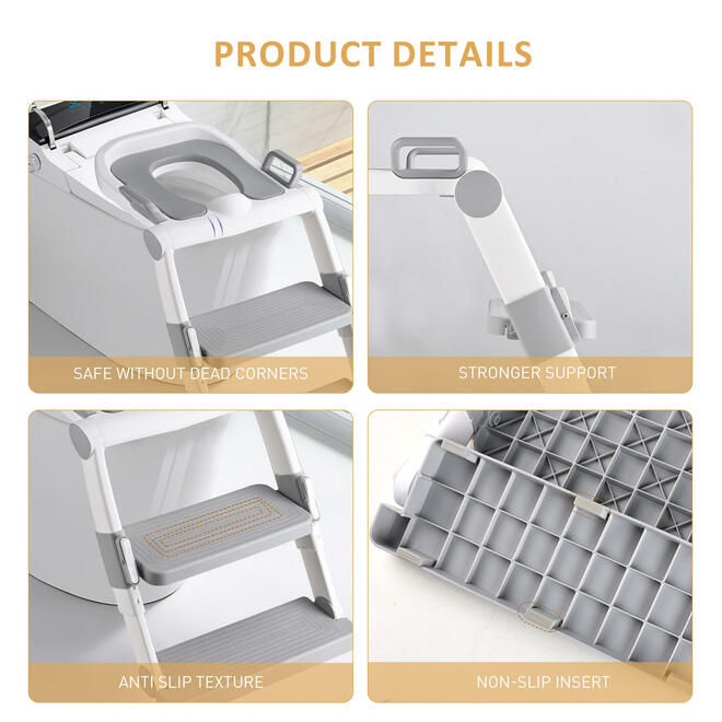 The design of ergonomic smooth handles on both sides help kids feel easier to sit down. The backrest of this toddler toilet seat makes kids feel safe and comfortable. There are multiple anti slip protection on the potty chair. The non-slip rubber pad is designed to effectively prevent children from slipping and the 4 anti-slip strips make it more stable on the toilet.