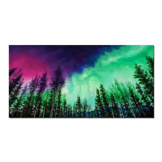 Hand-Embellished Northern Lights Tree Painting - 60 x 30 in.