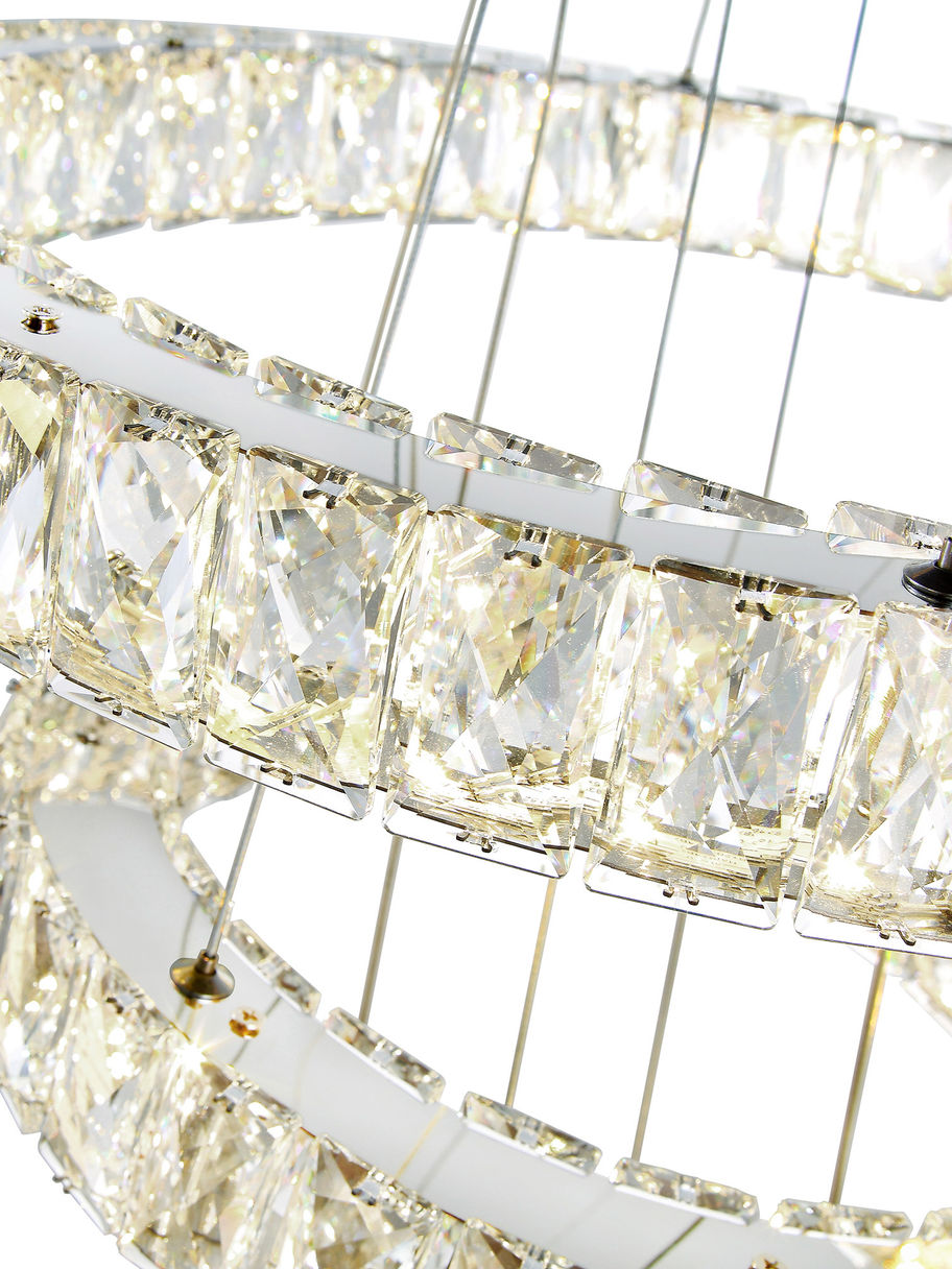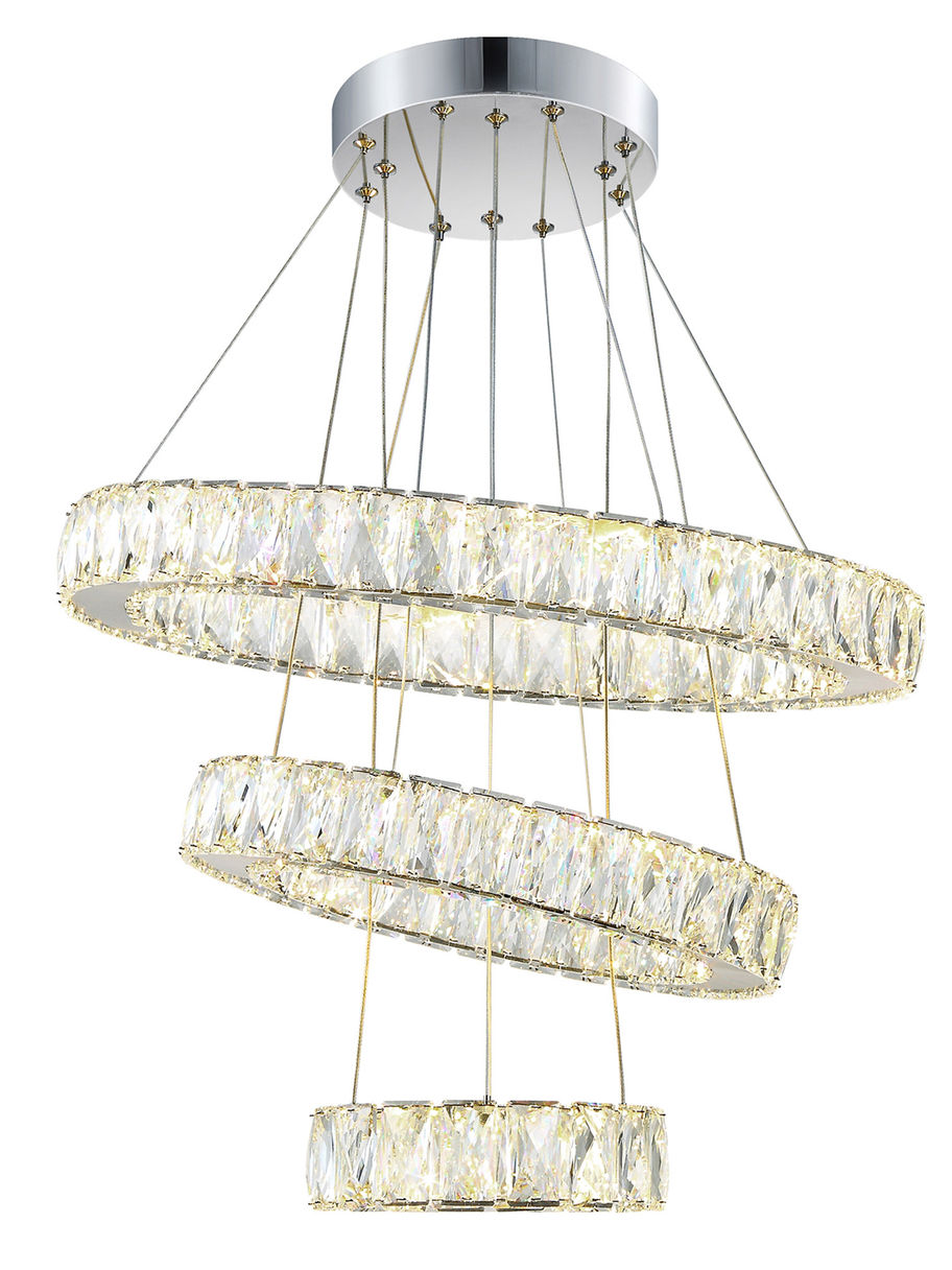 The Aylin pendant fixture by Loxley Rowe is set to illuminate your home with a warm, elegant glow. Its cascading spiral of sparkling crystals and Chrome-plated finish will add a touch of glamour to any room. Enjoy the convenience of flexible rope-style cables that allow for installation on flat ceilings or sloped surfaces such as those found in stairwells or vaulted ceilings. With integrated dimmable LED bulbs, this fixture will shed beautiful ambient light for up to 25,000 hours.