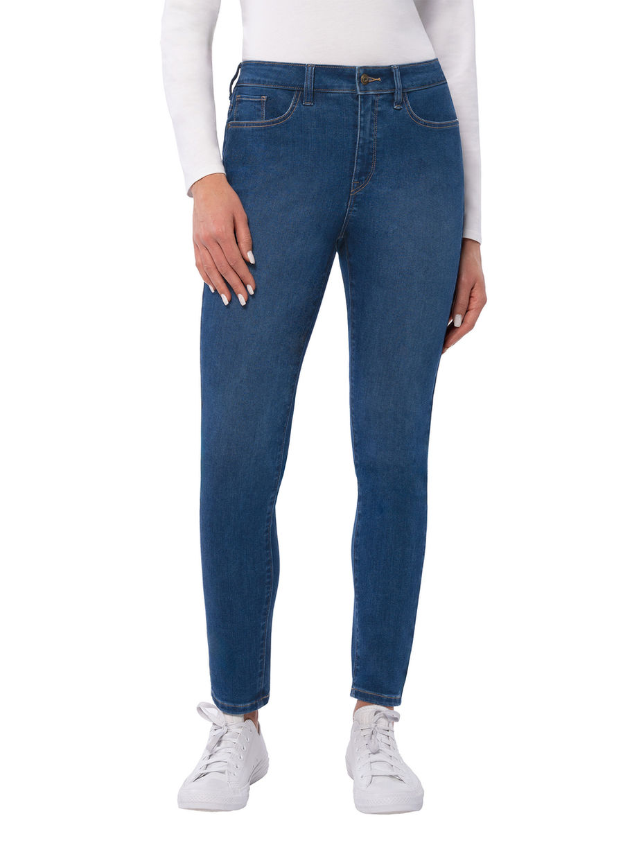 - Mid-Rise, slim fit, skinny leg