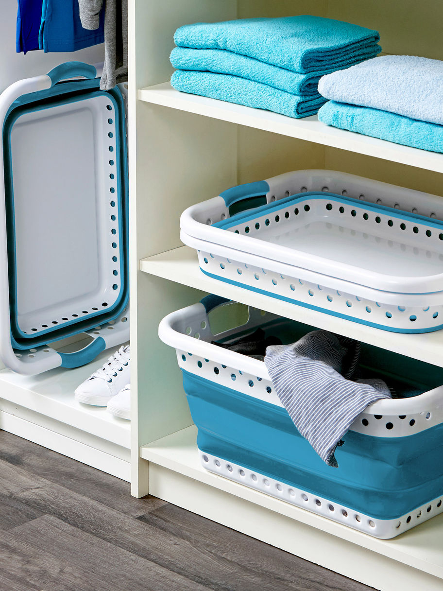 This collapsible laundry basket is perfect for any household. The collapsing feature makes it easy to store when not in use.