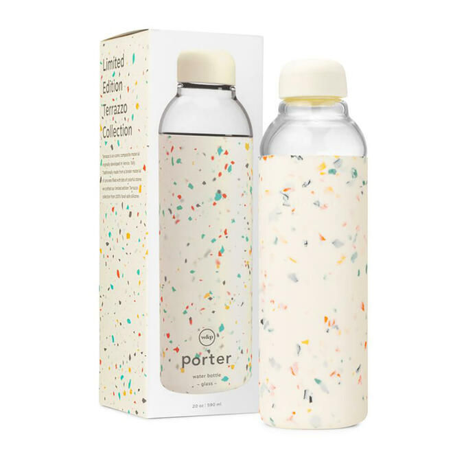 PORTER Glass Water Bottle With Silicone Sleeve, 590ml (20oz)